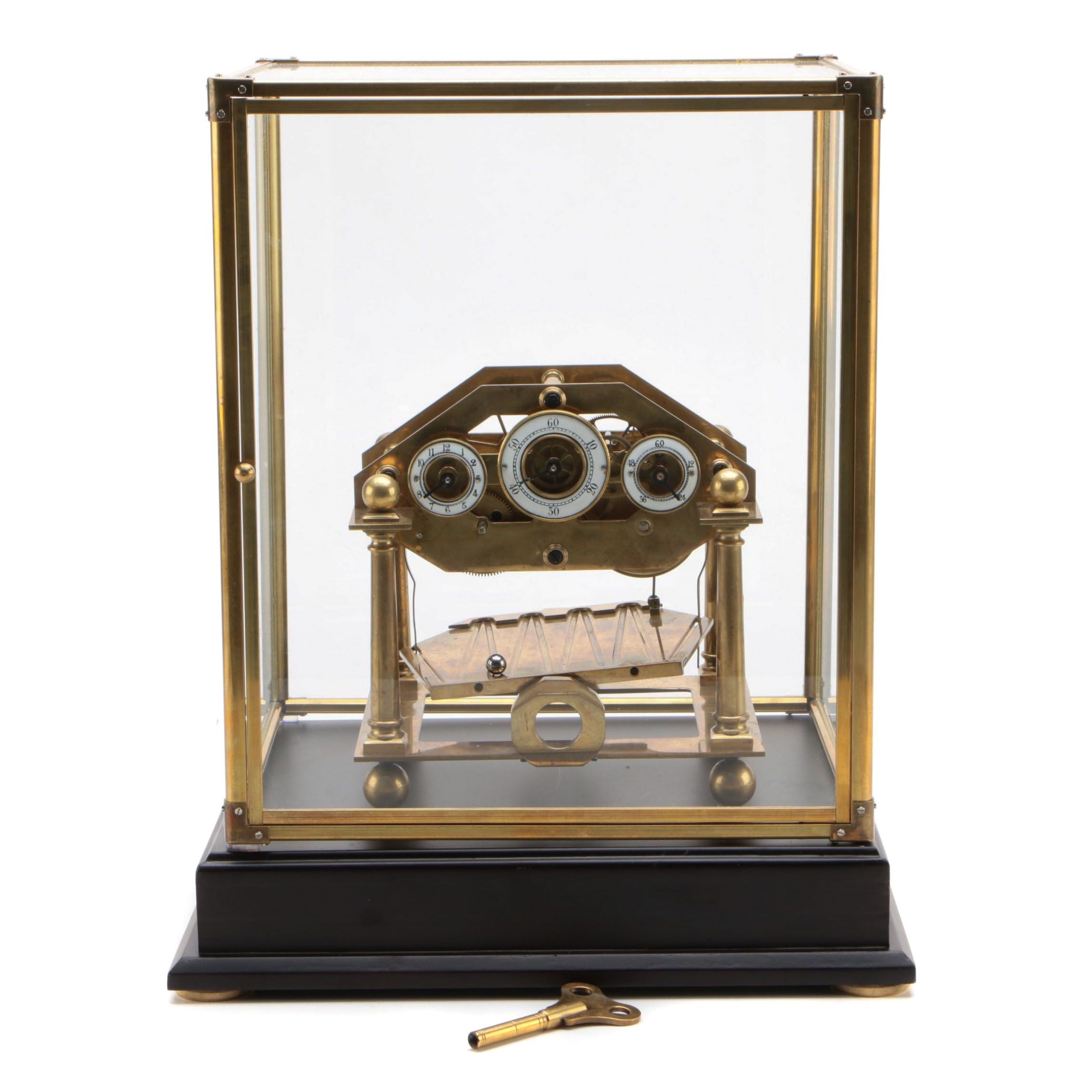 Devon Clocks Congreve Type Brass Rolling Ball Clock With Arabic Hour Minute And Second Dials Four Turned Pillar Supports On Mahogany Plinth Under Glass Designed By Sir William Congreve In 1