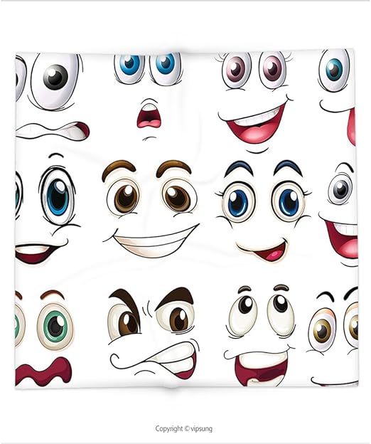 Vipsung Manta Decoracion De Dibujos Animados Cara Sonriente Emoji Cartoon Mano Dibujo Imagen Con Positivo Cara Expresiones Super Suave Y Acogedora Manta De Forro Polar Amazon Es Hogar