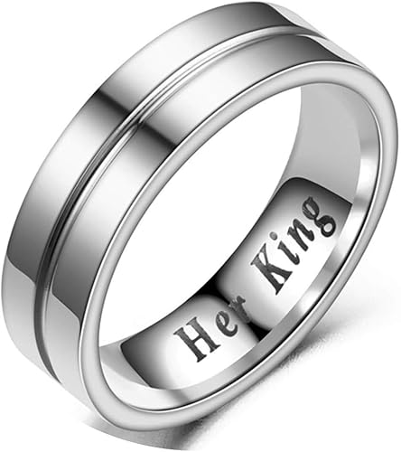 Epinki Anillos Hombre Acero Inoxidable Baratos 1 Pcs Anillo Redondo Grabado Her King His Queen Circonita Blanca Plata Anillo Boda Hombre Amazon Es Joyeria