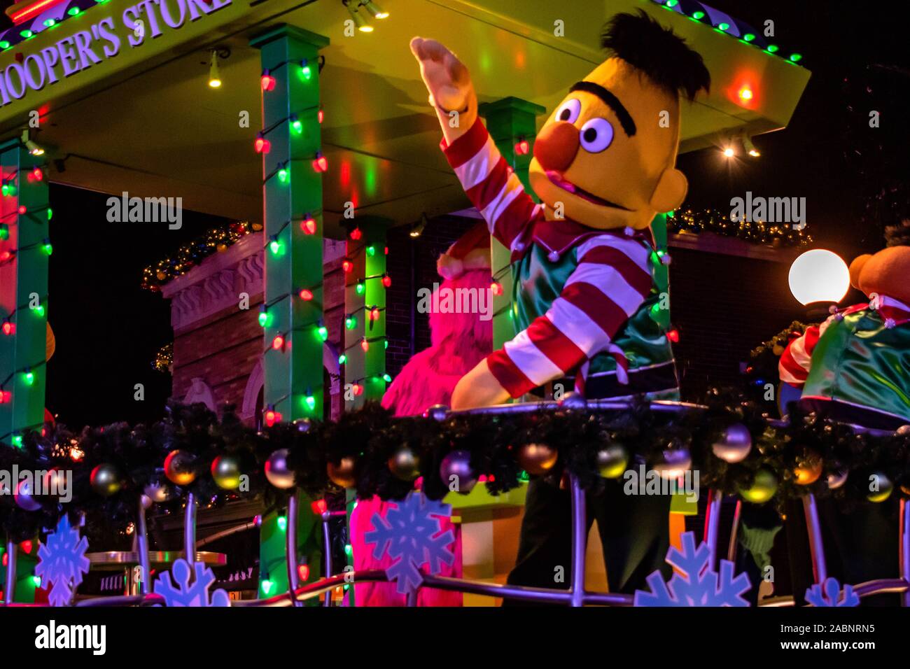 Orlando Florida November 23 19 Bert And Ernie In Sesame Street Christmas Parade At Seaworld Stock Photo Alamy