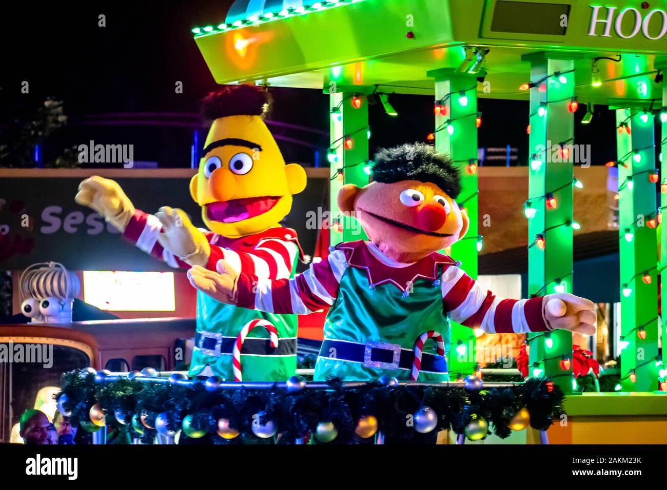 Orlando Florida December 30 19 Bert And Ernie In Sesame Street Christmas Parade At Seaworld Stock Photo Alamy