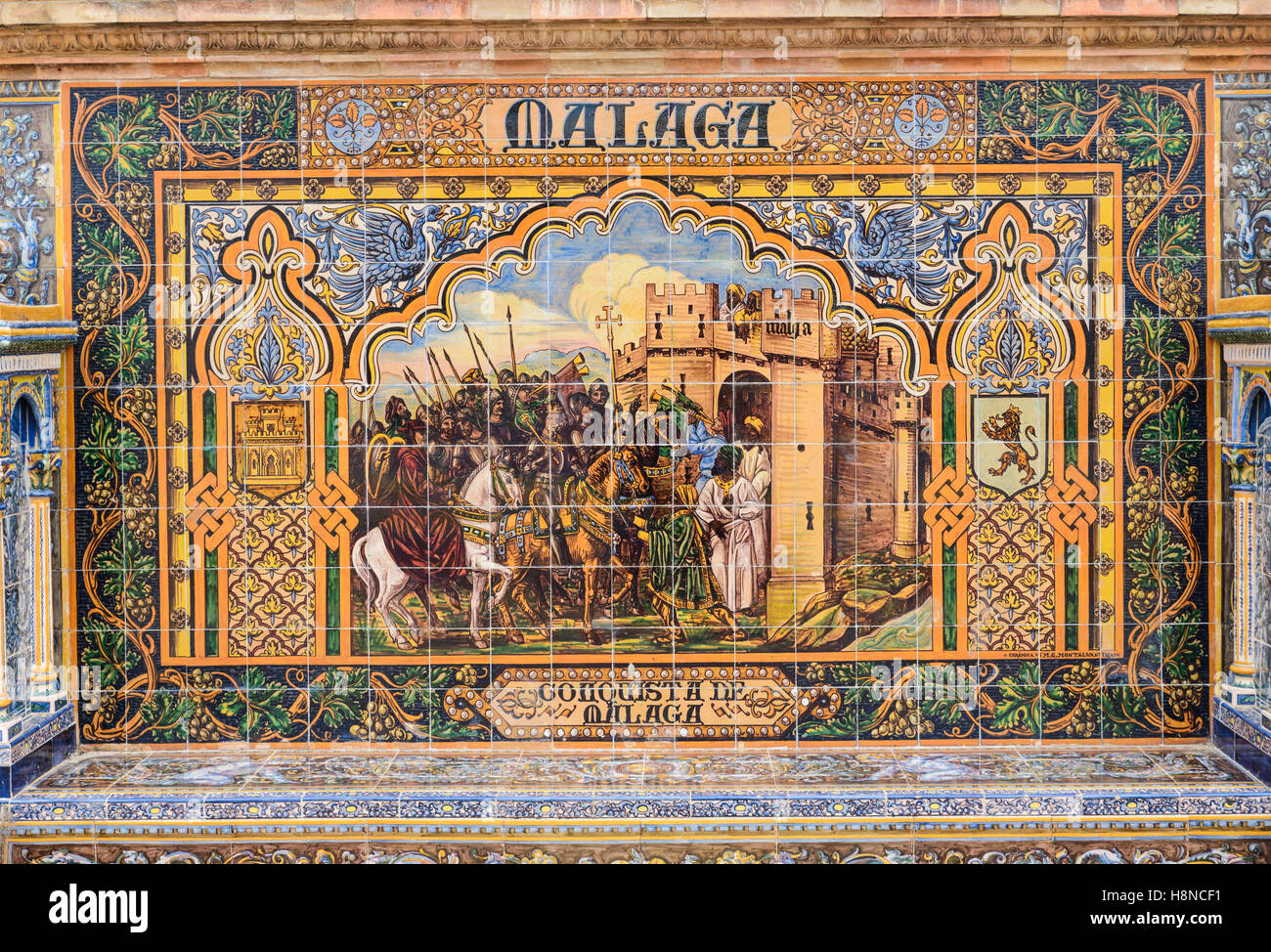 Banco De Azulejos Dedicado A Malaga Plaza De Espana Sevilla Andalucia Espana Europa Fotografia De Stock Alamy