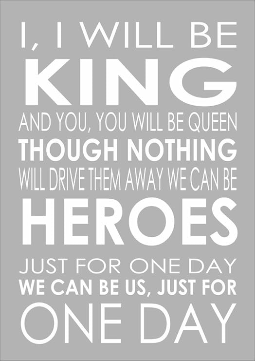 David Bowie Song Lyric Art David Bowie Art Print Music Inspired Print Typographic Print Heroes Davi Song Lyrics Art Music Quotes Lyrics David Bowie Lyrics