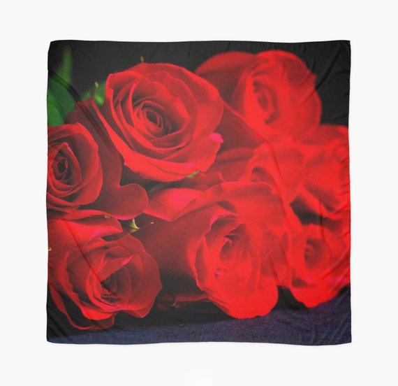 Blood Red Rose Scarf Black And Red Floral Scarf Flower Etsy