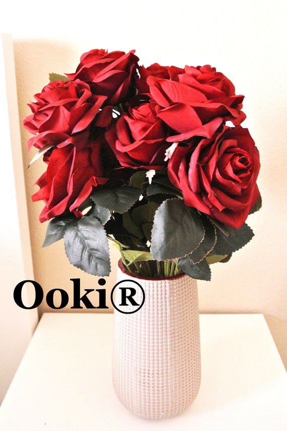 Blood Red Dark Rose Bouquet Artificial Silk Flower 10 Heads Etsy
