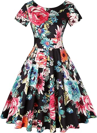Mintilimit Vestido De Fiesta Para Mujer Estilo Retro Vintage De Los Anos 50 Flores Negro S Amazon Es Ropa Y Accesorios