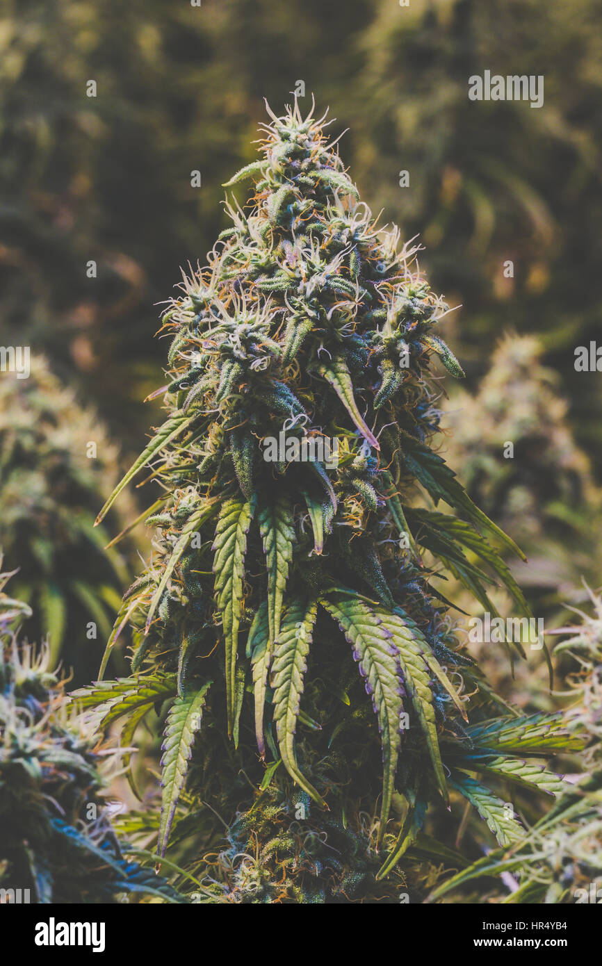Bello Retrato De Un Maduro Floracion Medico Legal De Marihuana Cannabis Bud Con Caidas Hojas Y Fuertes Y Largos Pistilos Blancos Y De Color Ambar Fotografia De Stock Alamy