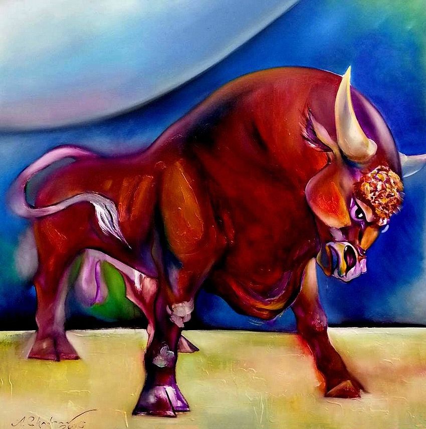 Blend Cota Bull Of Wall Street Original Oil On Canvas Painting By Blend Cota For Sale At 1stdibs