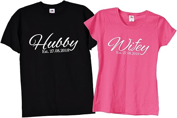 Hubby Wifey Camisetas Personalizadas Para Parejas Casadas 36 Negro Negro Y Rosa Con Texto En Blanco Medium Amazon Es Ropa Y Accesorios