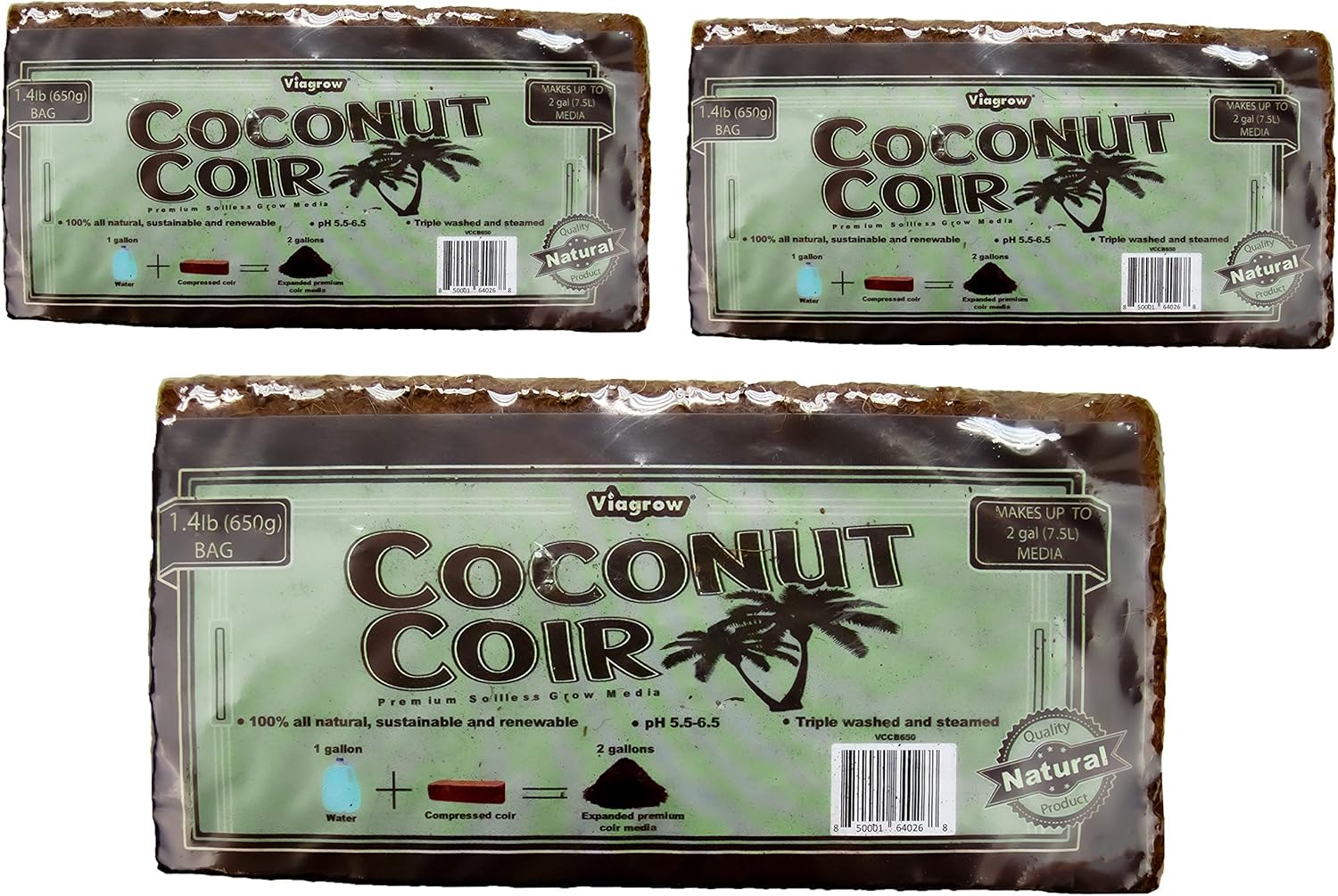 Amazon Com Viagrow Vccb650 3 Coco Coir 3 Pack Each Brick Makes 2 Gallons 7 5 Liters 8 Quarts Brown Garden Outdoor