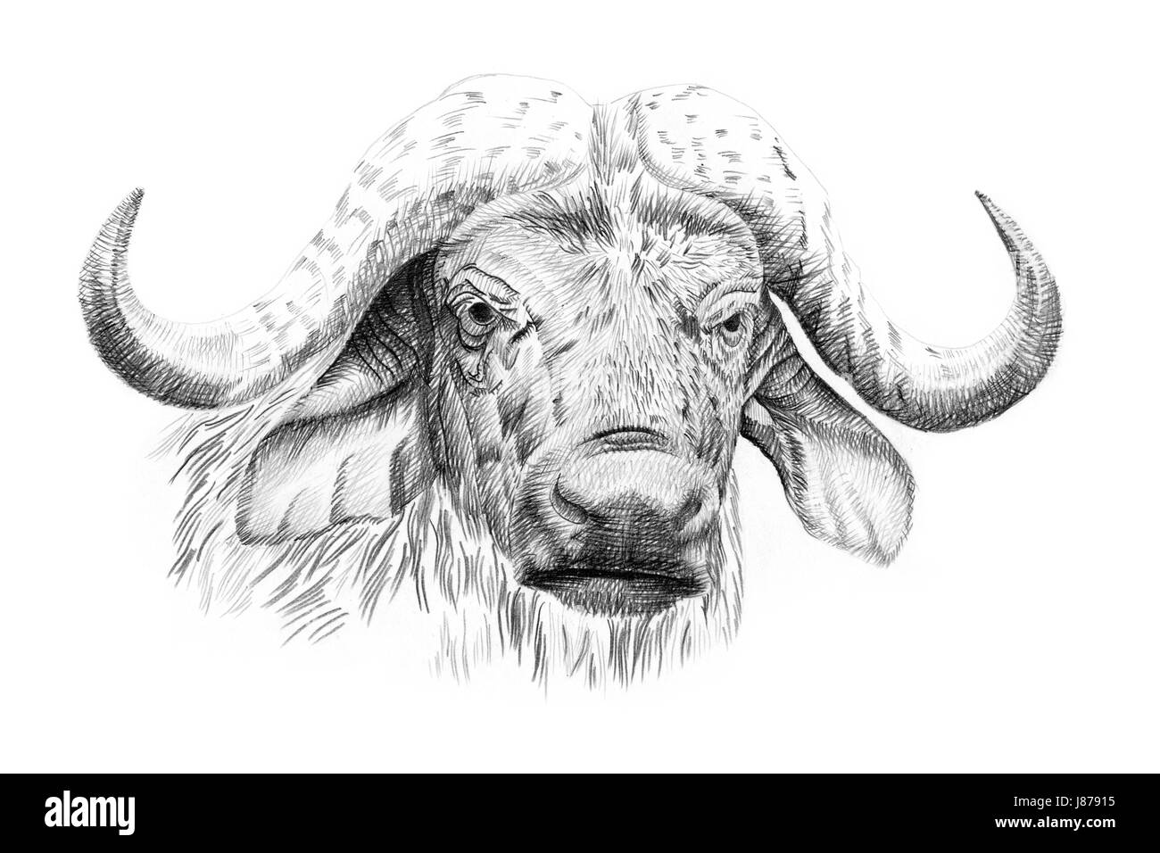 Retrato De Bufalo Dibujada A Mano En Lapiz Originales Sin Seguimiento Fotografia De Stock Alamy