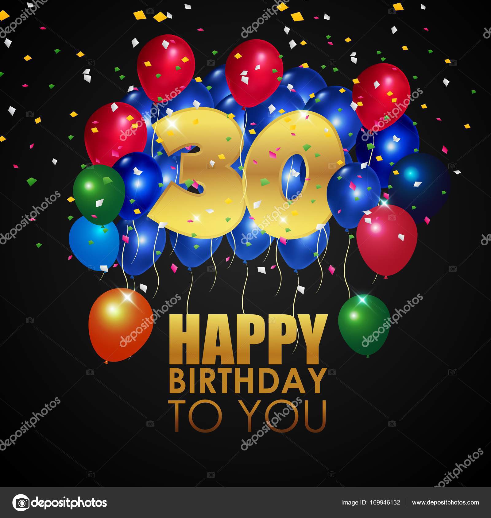 Happy Birthday 30th With Golden Number And Colorful Balloons Stock Vector C Sajikinanwar Yahoo Com