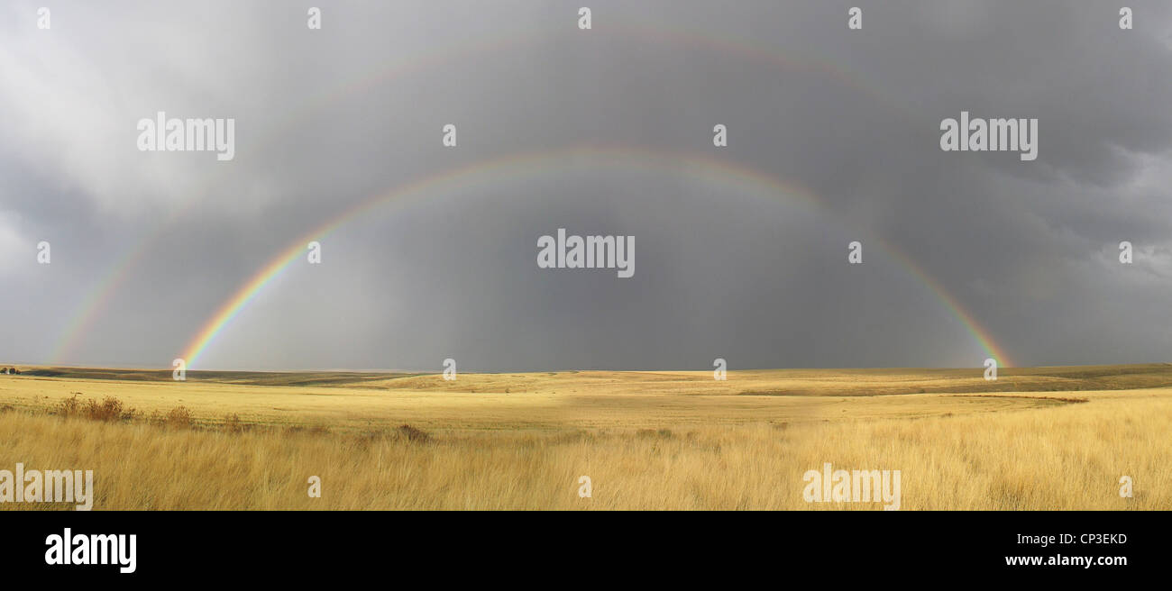 Un Arco Iris Doble Completo Aparece Sobre Un Campo Grande En El Noreste De Oregon Estados Unidos Fotografia De Stock Alamy