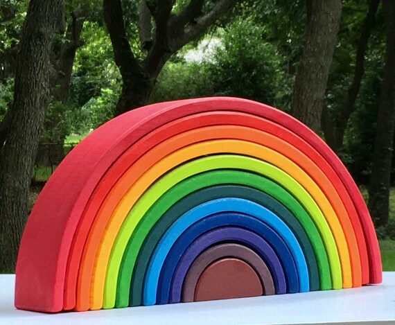 12 Piezas Grande Arco Iris De Madera Apilador Waldorf Etsy