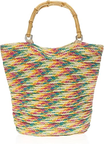 Amazon Com Arco Iris Vino Bolsa W Doble Madera De Bambu Asas Bolso Grande Ganchillo Paja Bolsa De Playa Shoes