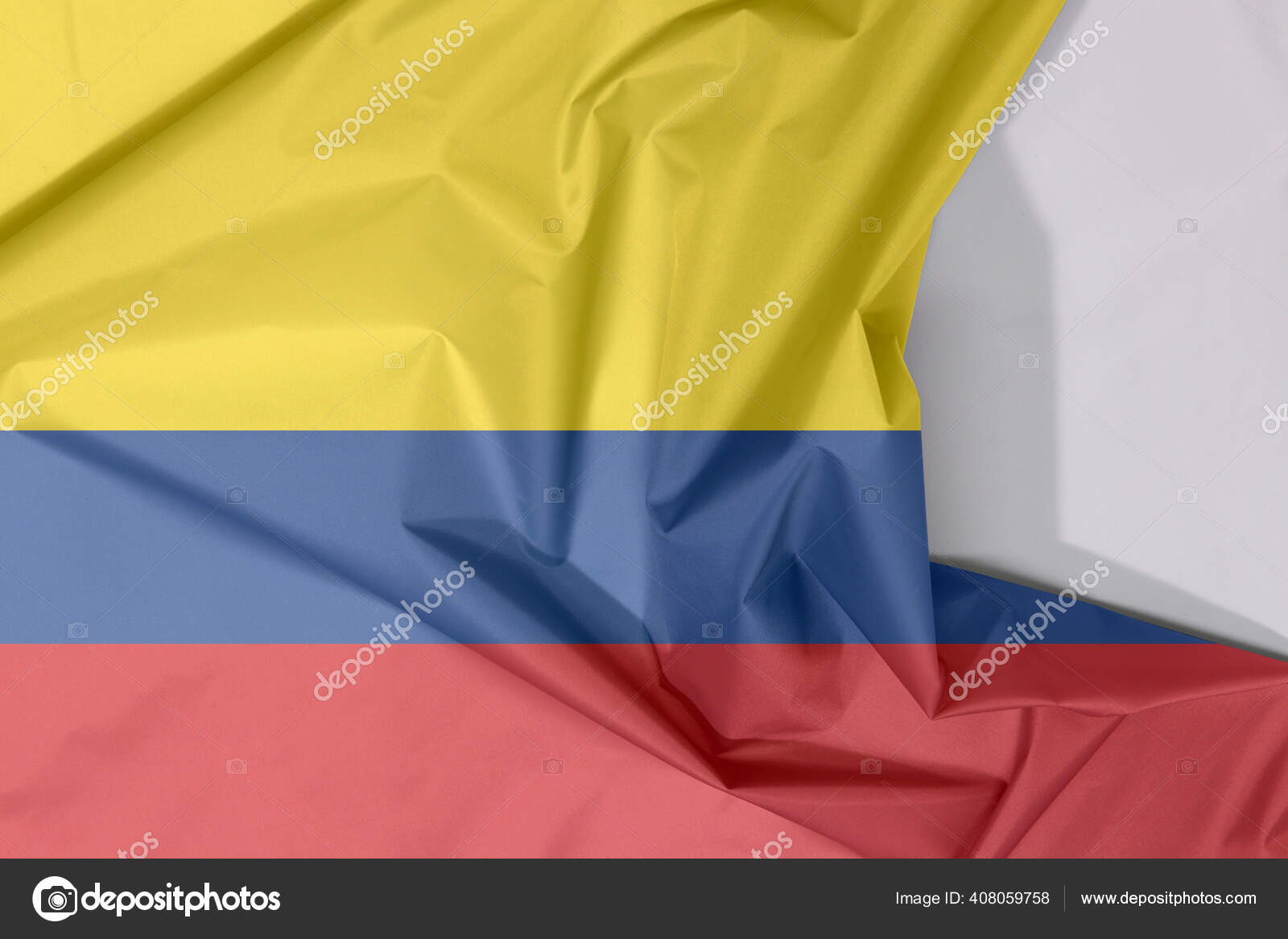 Bandera Tela Colombia Crepe Pliegue Con Espacio Blanco Tricolor Horizontal Foto De Stock C Au Hoo
