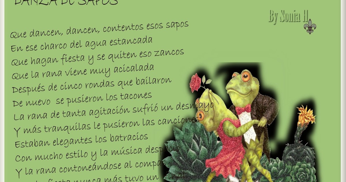 Los sapos suelen ser desagradables ante los ojos de algunas personas, incluso, pueden llegar a ser motivo de fobias para algunos otrosEn los sueños no es diferente, pues el significado que tiene en tu vida podría no ser el mejor, ya que te advierte sobre enfermedades, tragedias y malas amistades en tu entorno Sin embargo, no siempre es malo, pues si el sapo aparece en un ambiente laboral. Https//googl/kB1unSHabía un sapo, sapo, sapo, que nadaba en el río, río. Somos Tu Y Yo Los sapos y las ranas (Letras y canción para escuchar) (todos / Yo no te vi mas de una vezzz y no tienes magia por que yo lo se / cundo tu quieres los engañas / y despues te salen lagaña / (rosmery / hola!!.