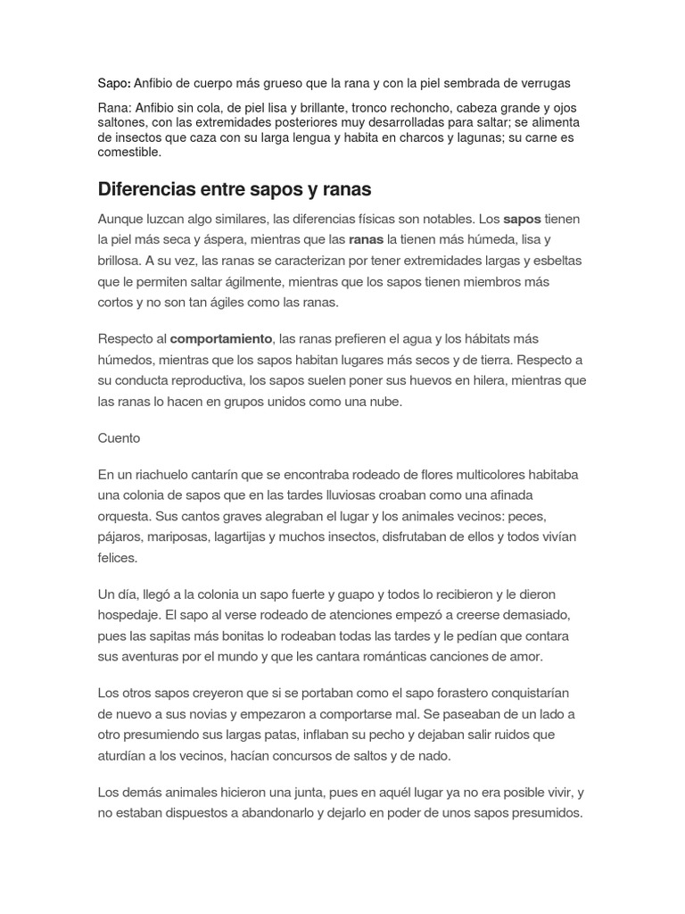 Los niños se divertirán haciendo una manualidad fácil de una rana o sapo que queda sentada y se puede usar como juguete Visita esta actividad para aprender sobre ranas y sapos Visite el tema de los anfibios donde encontrará canciones, cuentos y fábulas La manualidad se puede adaptar a un sapo coloreando verrugas o pegando semillas. Ranas comunes cantando en una charca en primaveraLos que cantan son los machos que persiguen a las hembras para aparearse con ellasEl sonido lo producen al. En el caso del miedo a ranas y sapos se vuelve especialmente grave cuando el que lo sufre visita lugares en los que pueden habitar estos animales ya que se camuflan fácilmente y pueden sorprendernos saltando repentinamente a nuestro alrededor.