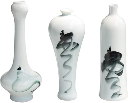 Lings Juego De 3 Jarrones De Ceramica Jarrones Clasicos Chinos Para La Decoracion Del Hogar Para Sala De Estar Y Oficina Articulos De Escritorio Pintura De Tinta Amazon Es Hogar