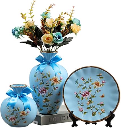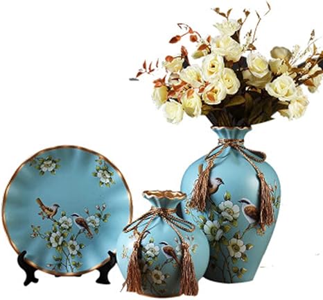 Amazon Com Jarron De Ceramica De 3 Piezas Jarron Chino Clasico Para Decoracion Del Hogar Para Oficina Y Sala De Estar El Mejor Regalo Y Articulos De Arte Patron De Flores De Pajaro