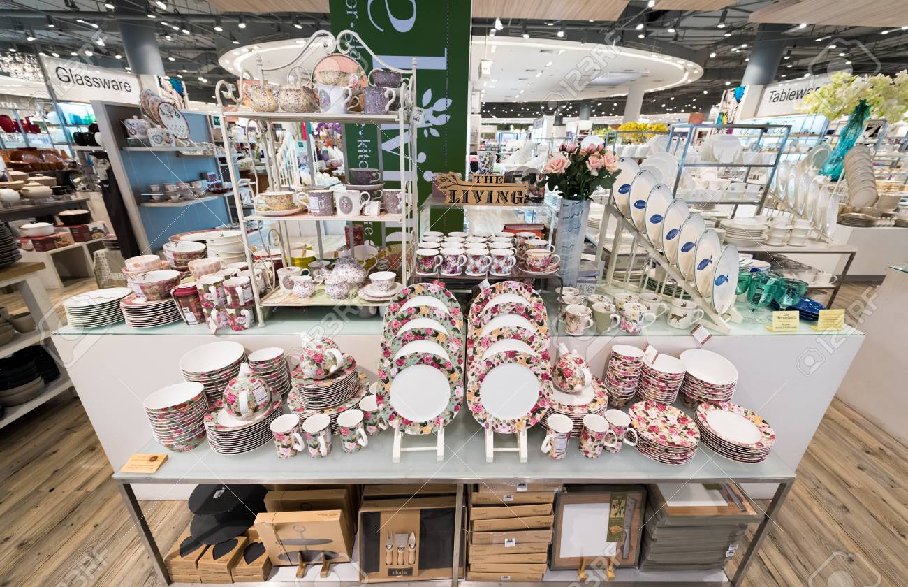 Bangkok 17 De Marzo 16 Varios Servicios De China Y Otros Utensilios En Una Tienda De Articulos Para El Hogar En El Centro Comercial Siam Paragon Es Uno De Los Centros