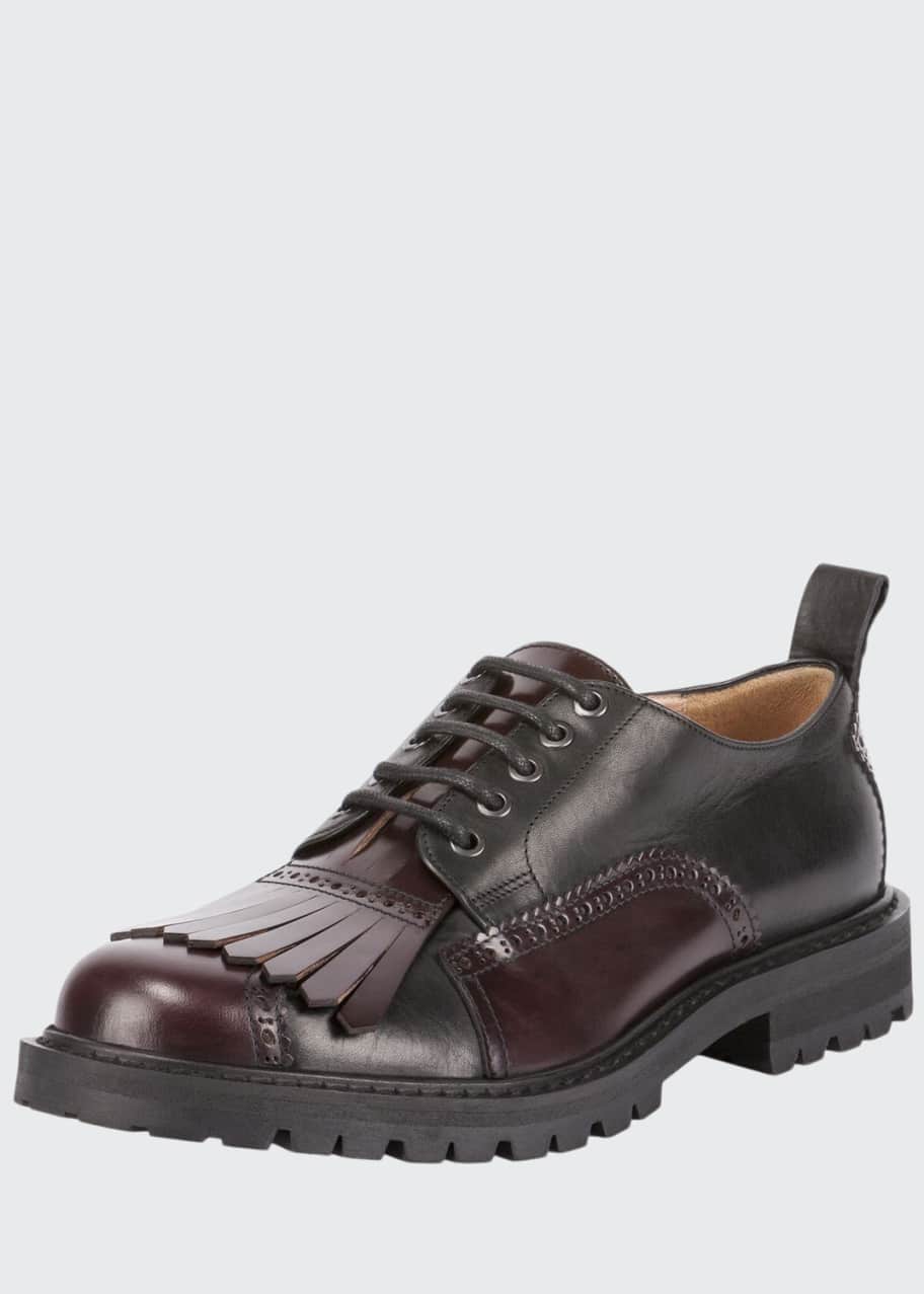 Dries Van Noten Two Tone Leather Derby Shoe W Kiltie Bordeaux Bergdorf Goodman