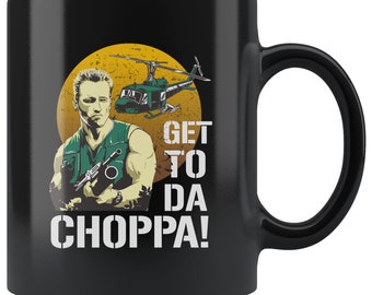 Amazon Com Predator Arnold Schwarzenegger Get To Da Choppa Mug Black Ceramic 11oz Tea Cup Kitchen Dining