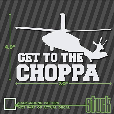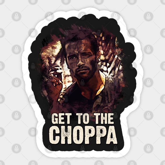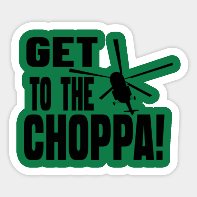 Get to the Choppa E 1,046 players, 1,448 plays 0 playing now, 5 most ever online 2 Embed Share 0 favourites paerrazu Published on 28 Aug, 15. Song from the album A Good Day To Die Hard is released on Feb 13 The duration of song is 0259 This song is sung by Marco Beltrami Related s Get To The Choppa!, Get To The Choppa!. GET TO DA CHOPPA originally a line from the classic movie Predator, GET TO DA CHOPPA has now taken on a more expansive meaning GET TO DA CHOPPA has now come to mean that one is saying that they must attain whatever goal it is that is set forth "getting the choppa " is teh act of succeeding in this goal and is the highest possible recognition.