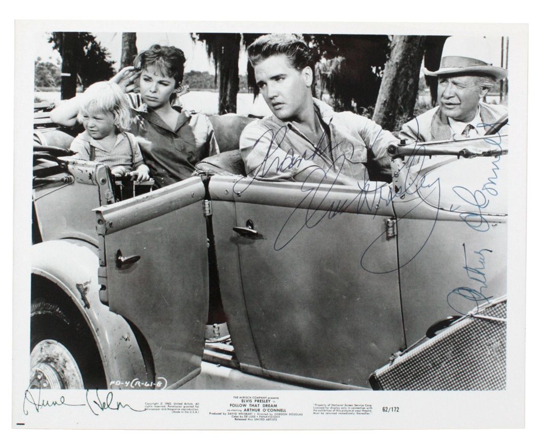 Autographed Photo Elvis Presley Arthur O Connell Anne Helm On Follow That Dream Movie Producti