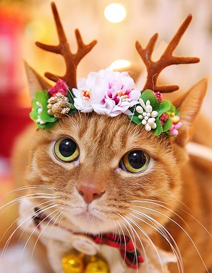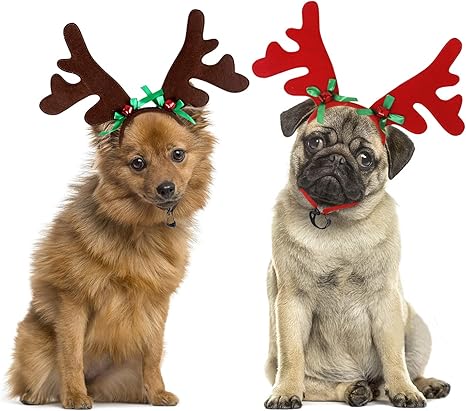 Amazon Com Bwogue Juego De 2 Diademas De Reno Para Navidad Perro Gato Mascota Disfraz De Navidad Accesorios Para Perros Pequenos Y Medianos Kitchen Dining