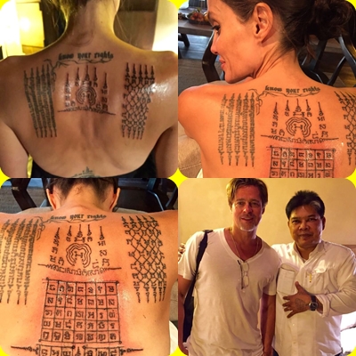 Los tatuajes de Angelina Jolie reflejan la vida y obra de la actriz, desde sus divorcios hasta la labor humanitaria que ha llevado a cabo en Cambodia y esto es lo que revelan ellos La actriz es de las pocas mujeres en Hollywood que se ha atrevido a realizarse tatuajes, incluso a principios de la década del 00 explicó que tenía una fascinación casi sexual con ellos. Tatuajes de Angelina Jolie Tatuaje por Brad Pitt en la espalda Uno de los más recientes tatuajes que se ha hecho Angelina Jolie es este que podéis ver en el centro de su espalda Un tatuaje realizado por el ex monje tailandés Ajarn Noo Kanpai que se hizo junto Brad Pitt en Siem Reap en Camboya, poco antes de que se anunciara la. Johana Bahamón se hizo tatuaje con técnica que usa Angelina Jolie Johana Bahamón mostró en su cuenta de Instagram que sobre su piel ahora tiene un tatuaje tipo Sak Yant, que es común ver entre los soldados y los guerreros.