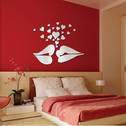 Diseno De Labios Y Diseno De Corazones De Espejos Adhesivos Para Pared Amazon Es Hogar