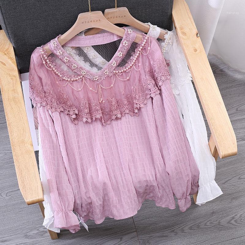 Camisetas Bonitas Y Dulces De Estilo Coreano De Moda Para Mujer De Manga Larga Elegante Para Mujer Otono Invierno Camisetas Basicas De Ganchillo Blusa De Encaje Lace Blouse Crochet Lace Blouseblouse Fashion Aliexpress