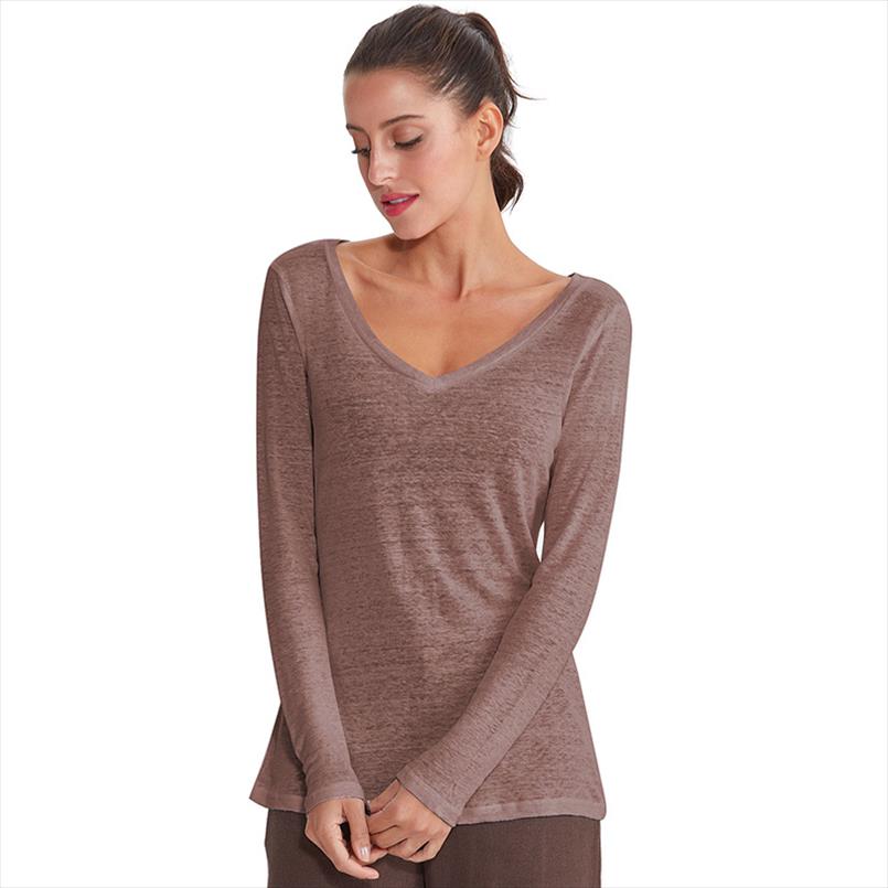 Isshe Camisetas Cuello V Manga Larga Mujer Camiseta Interior Para Dama Camisas Camisa Top Chica Blusas Bonitas Senora Remera Remera De Manga Larga Blusones Sudaderas Color Solido Amazon Es Ropa Y Accesorios