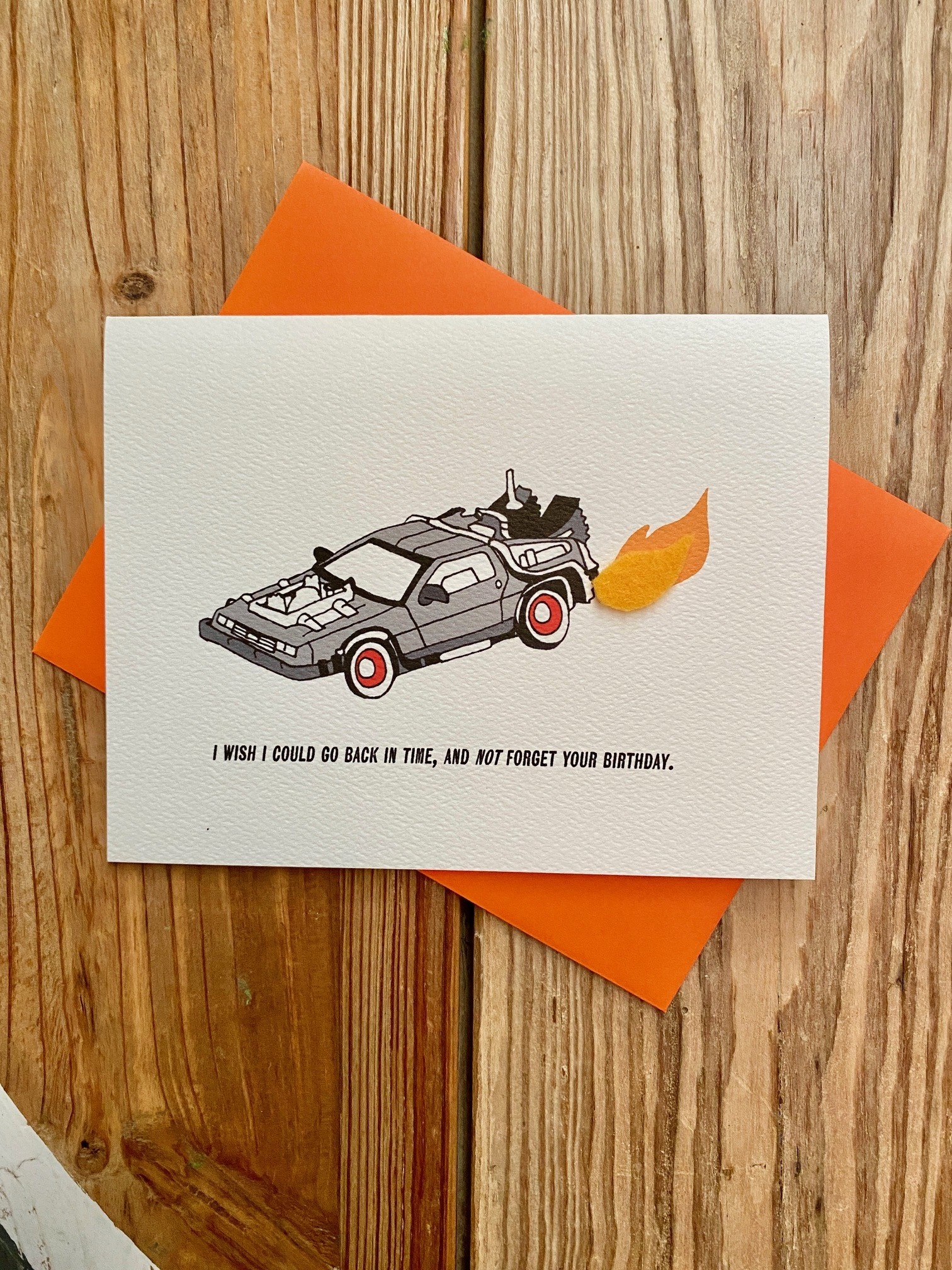 Delorean Belated Birthday Greeting Card Homespun Modern Handmade