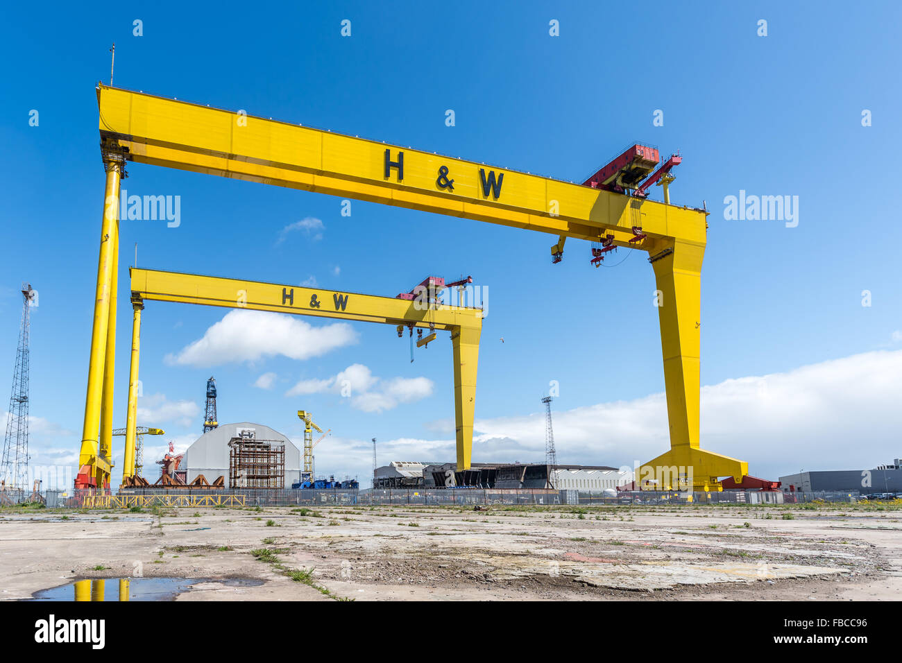 The Harland Wolff Cranes Samson Goliath In The H W Shipyard Where Stock Photo Alamy