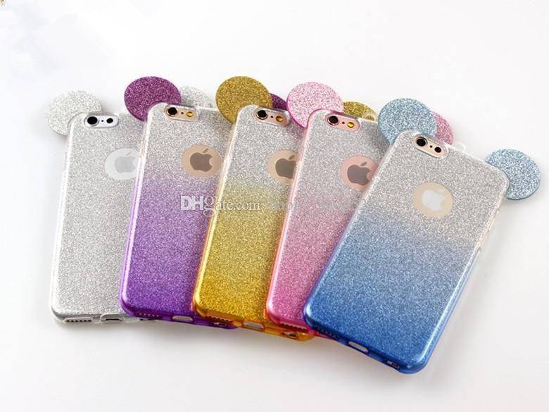 Fundas De Movil Personalizadas Popular 3d Orejas De Raton Tpu Funda Con Brillo Suave Cambio De Color Gradual Con Cuerdas Para Colgar Cajas Del Telefono Para Iphone X 8 5s 6 6s