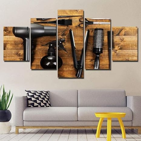Amazon Com Blankid Cuadro Decorativo De 5 Piezas Para Decoracion Del Hogar Con Tijeras Y Peine Para Pintar Decoracion De Salon De Belleza Poster Para Colgar Home Kitchen