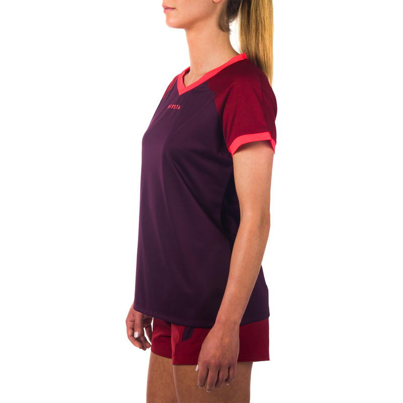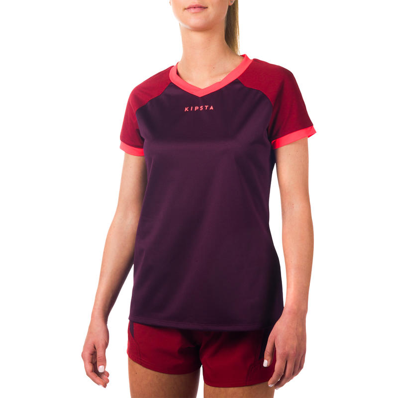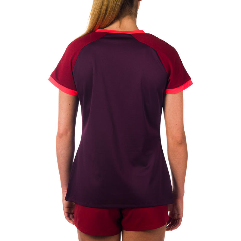 Camiseta De Rugby Fh 500 Mujer Ciruela Burdeo
