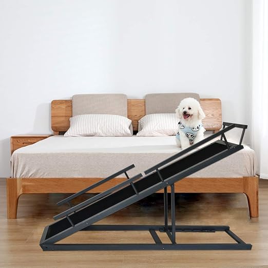 Amazon Com Rampa De Cama Mdbt Para Perros Pequenos Gris Costero Rampa De Madera Para Mascotas Con Superficie Antideslizante Para Camas Altas 59 Pulgadas Largo Ajustable 37 Pulgadas Soporte Alto Para Gatos Y