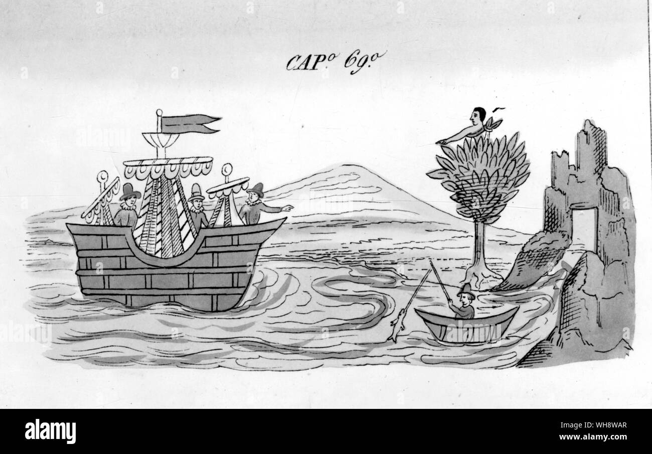 Los Indios Vista Los Barcos Espanoles A Partir De Un Dibujo Del Siglo Xvi Por Un Artista Mexicano Fotografia De Stock Alamy