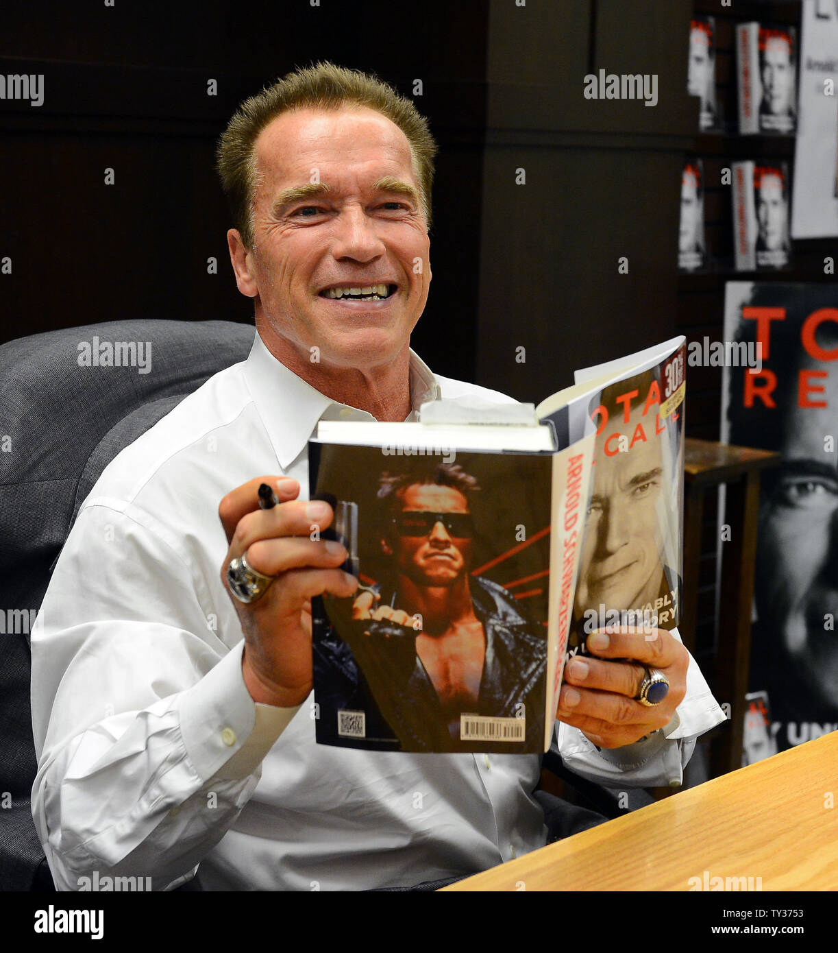 Arnold Schwarzenegger Signs Copies Of His New Book Total Recall My Unbelievably True Life Story At Barnes Noble Bookstore At The Grove In Los Angeles On October 5 12 Upi Jim Ruymen