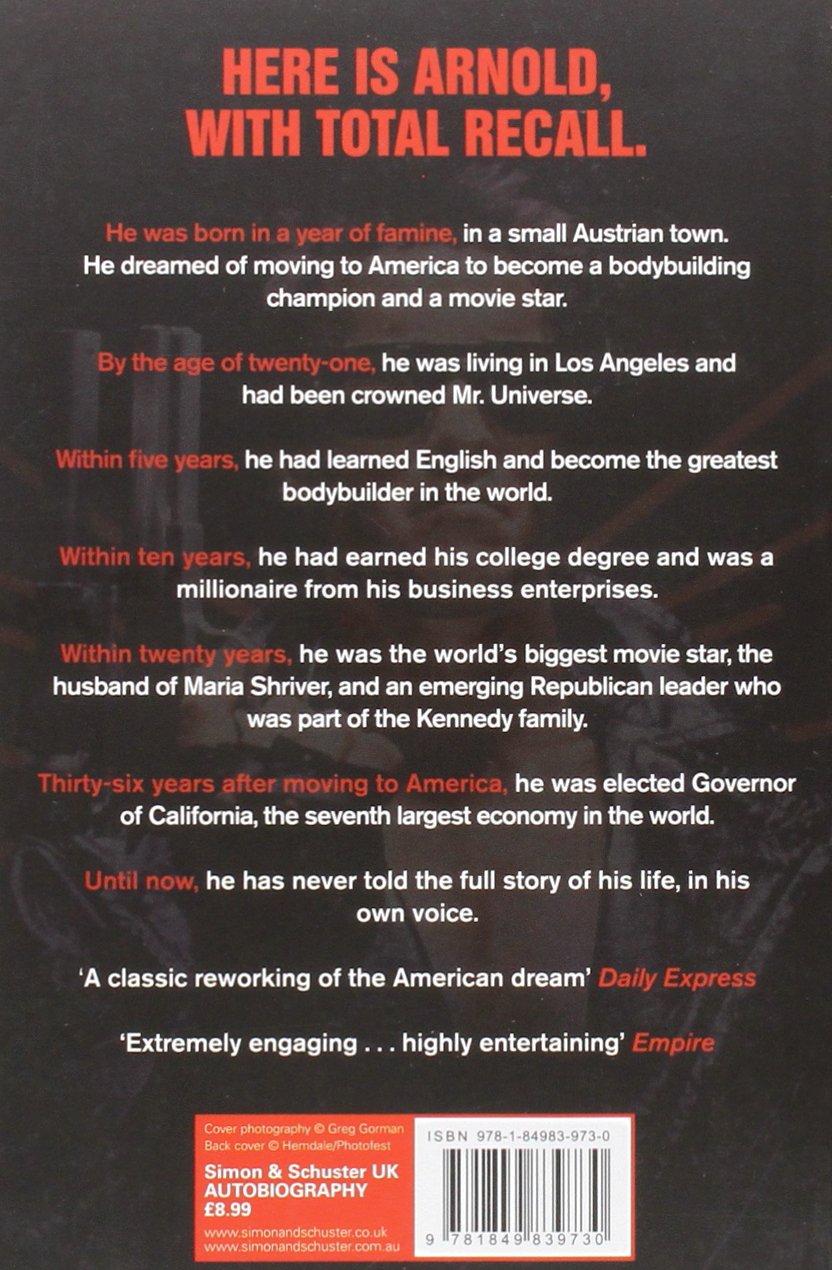 Total Recall is the unbelievably true story of Arnold Schwarzenegger's life Born in the small city of Thal, Austria, in 1947, he moved to Los Angeles at the age of 21 Within ten years, he was a millionaire business man. Total Recall by Arnold Schwarzenegger Book Summary & Commentary 46 on Amazon 12 656 pages "To be successful, you must be brutal with yourself and focus on the flaws" — Arnold Schwarzenegger Quick Summary Total Recall is a dream immigrant success story, but Arnold shares his many mistakes and flaws, too People said he couldn't succeed. Total Recall is the autobiography of Arnold Schwarzenegger, who is probably best known for his movie role as TerminatorHe is not only a successful actor and businessman, but also a former professional bodybuilder and politician, who served two terms as Governor of California.