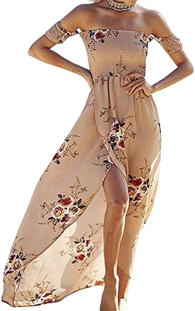 Beach Off Shoulder Dresses For Women Floral Wedding Guest Maxi Dress At Amazon Women S Clothing Store