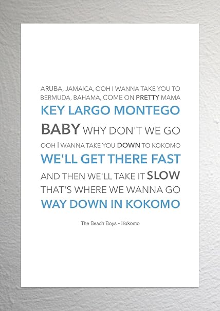The Beach Boys Kokomo Funky Lyric Art Print Size Amazon Co Uk Kitchen Home