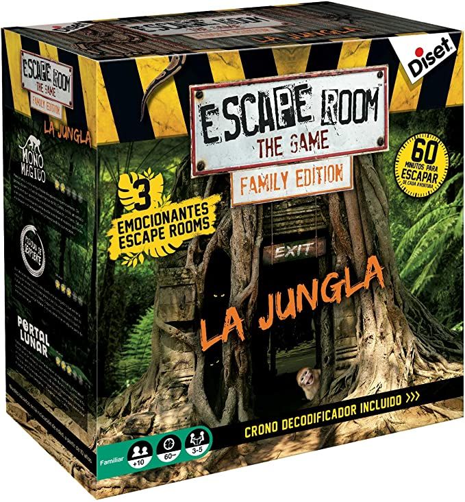 Now is the chance Escape Room The Game family edition is made for families with kids aged 10 This new game contains three exciting 60minute Escape Room adventures Magic Monkey, Snake Bite and Moon. Escape Room the Game Family Edition Jungle The new adventures take place in the Jungle!. The link to Juego Escape Room La Jungla Family Edition has been copied Detalles Juego de mesa familiar que simula una experiencia Escape Room de verdad Con 3 nuevas aventuras tematizadas en la jungla Mono mágico, Picadura de serpiente y Portal lunar El objetivo es conseguir resolver cada una de las aventuras en menos de 1 hora a través de.