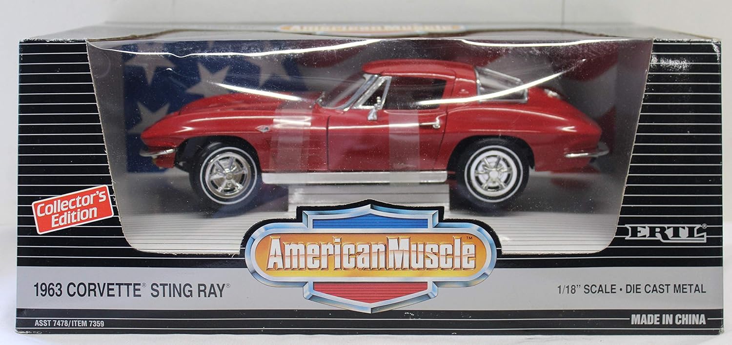Amazon Com Ertl American Muscle 1963 Corvette Sting Ray 1 18 Red Toys Games