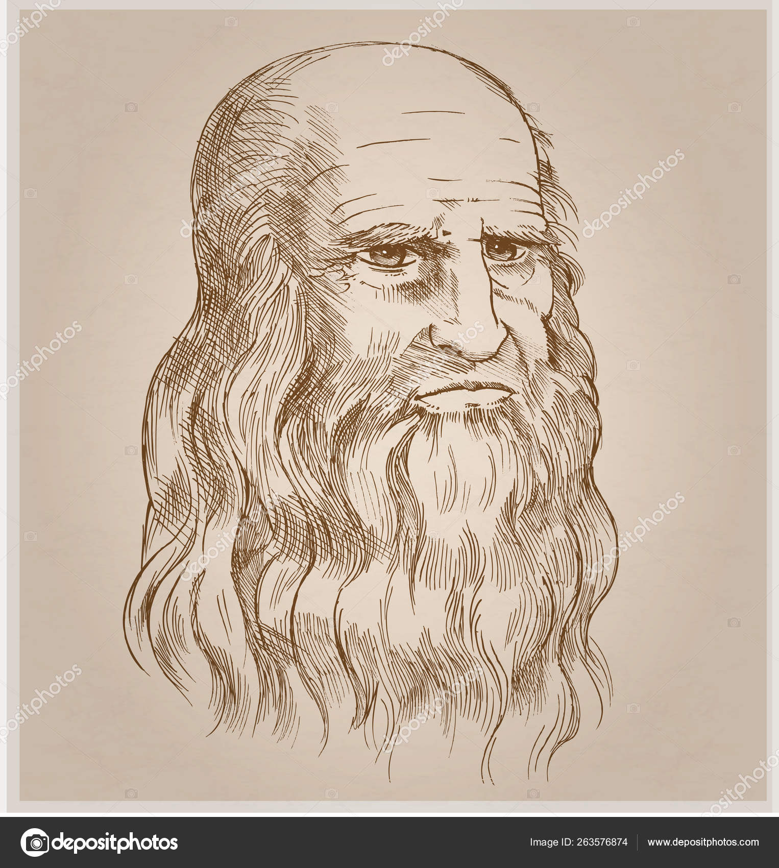 Hand Drawn Vector Portrait On Paper Background Leonardo Da Vinci Stock Vector C Doom Ko