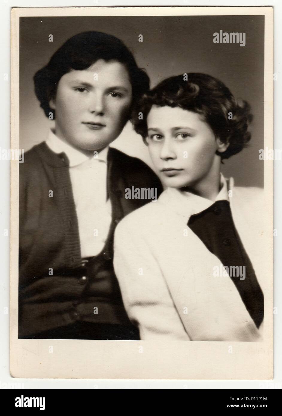 La Republica Socialista Checoslovaca Circa 1950 Vintage Studio Foto Retrato Muestra Las Chicas Jovenes Antiguas Fotografias En Blanco Y Negro Fotografia De Stock Alamy