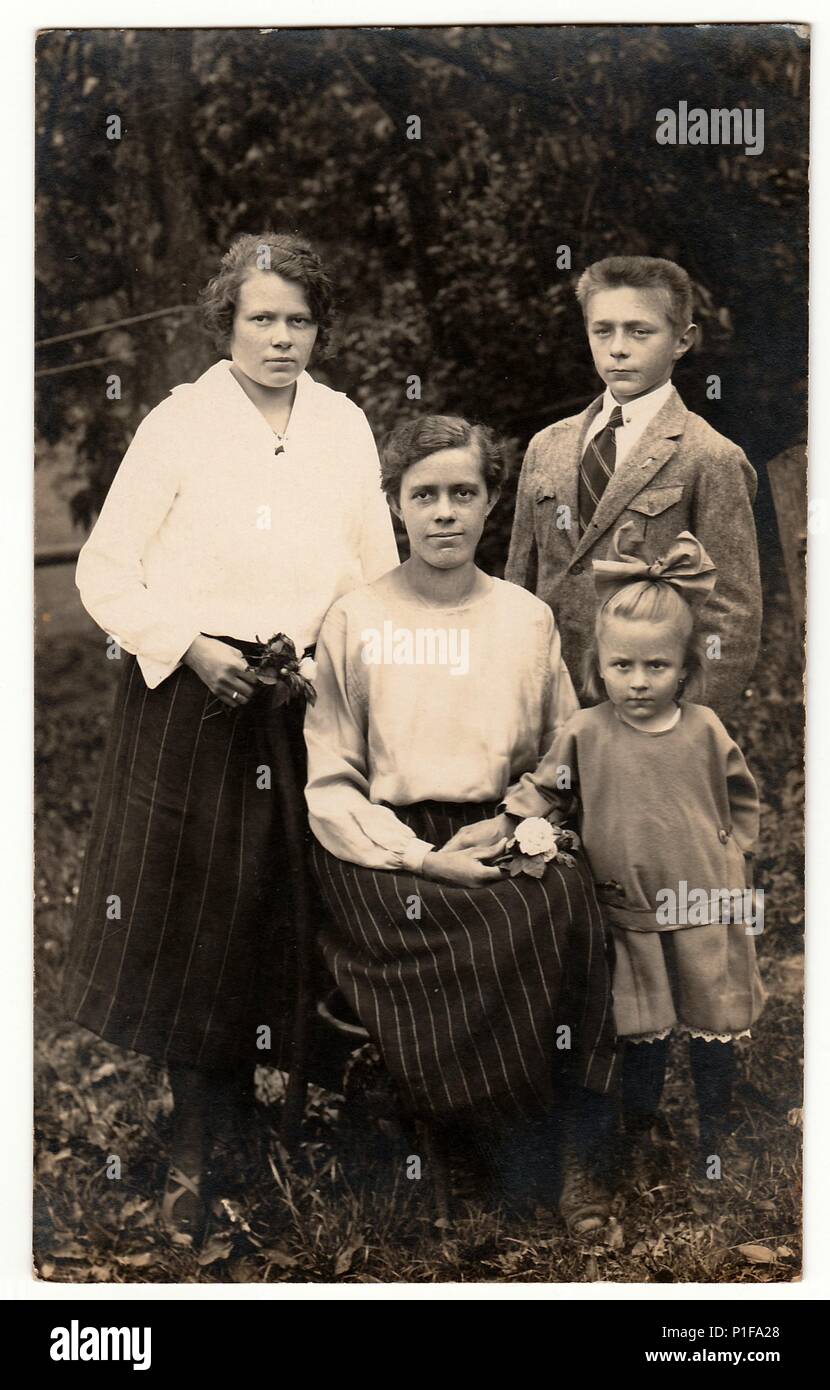 La Republica Checoslovava Circa 1940 Foto De Epoca Muestra A Mujeres Elegantes Con Una Chica En El Jardin Durante La Primavera Fotografia Antigua En Blanco Y Negro Fotos Retratos Imagenes